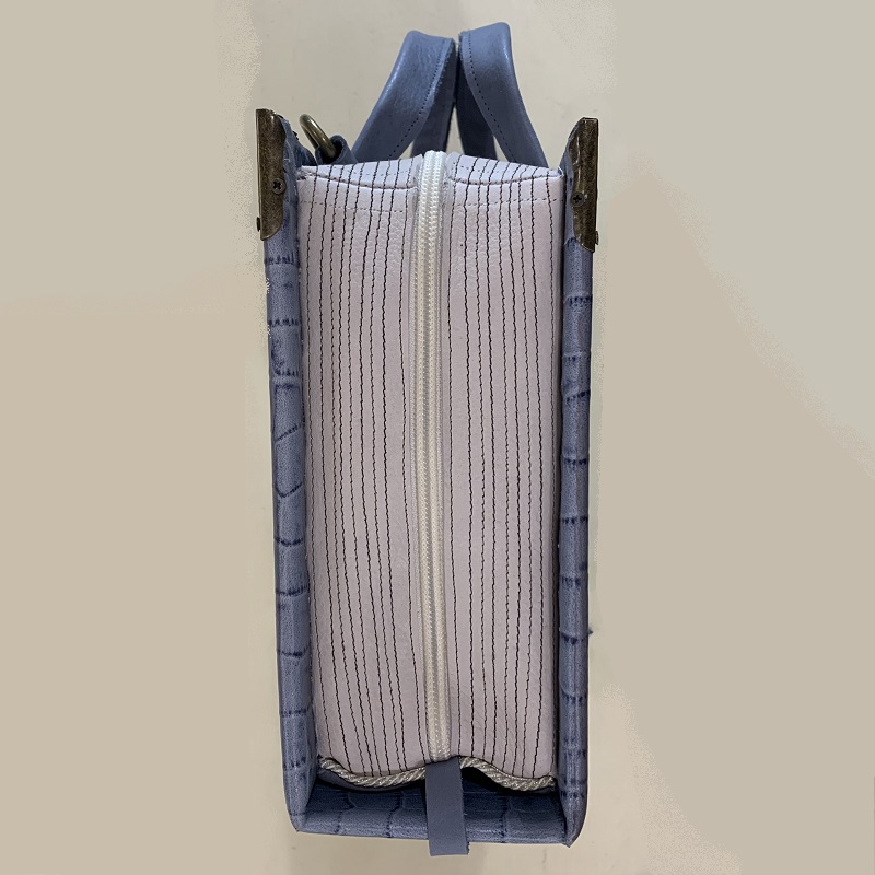 Tracolla in catena di metallo bronzato lunga cm.80 circa removibile, agganciabile ad anelli presenti sulla borsa con moschettoni, chiusura con 2 cerniere, manici di cm. 26 circa.